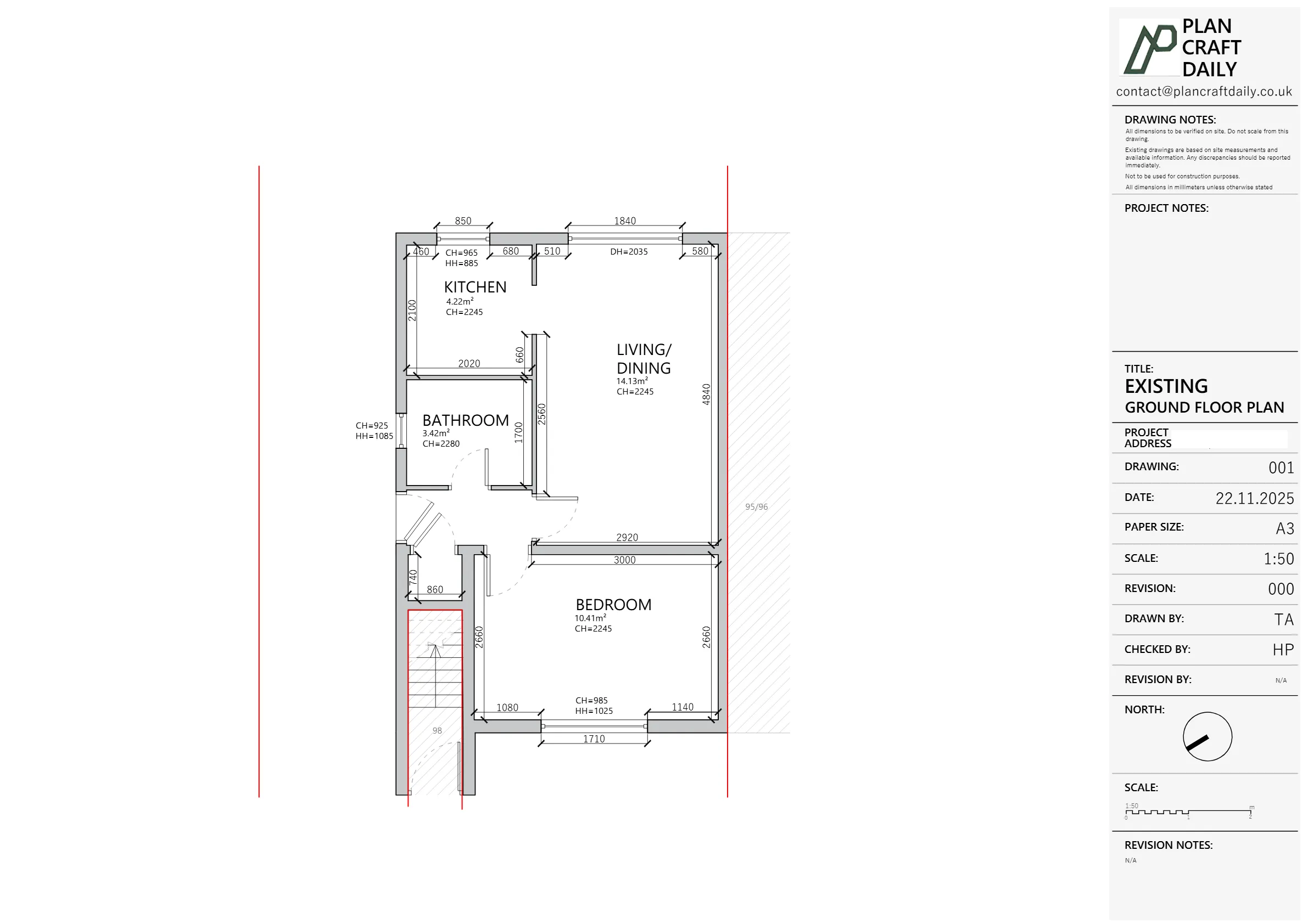 We then prepared a draft drawing pack (ground floor plan only) and asked Anthony to review it before making the final payment.