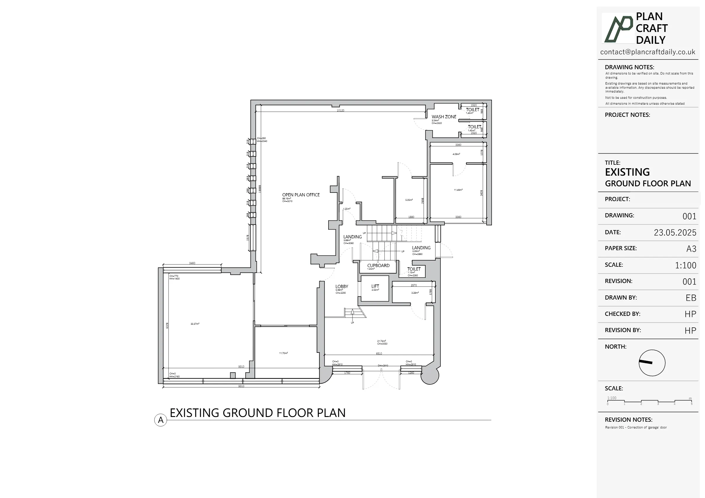Rob sent across a marketing brochure and some low-quality “existing” PDFs. They were enough to understand the building’s rough layout, but not reliable enough for detailed design work. He needed a fresh measured survey that simplified the geometry without wasting budget on information they wouldn’t use.