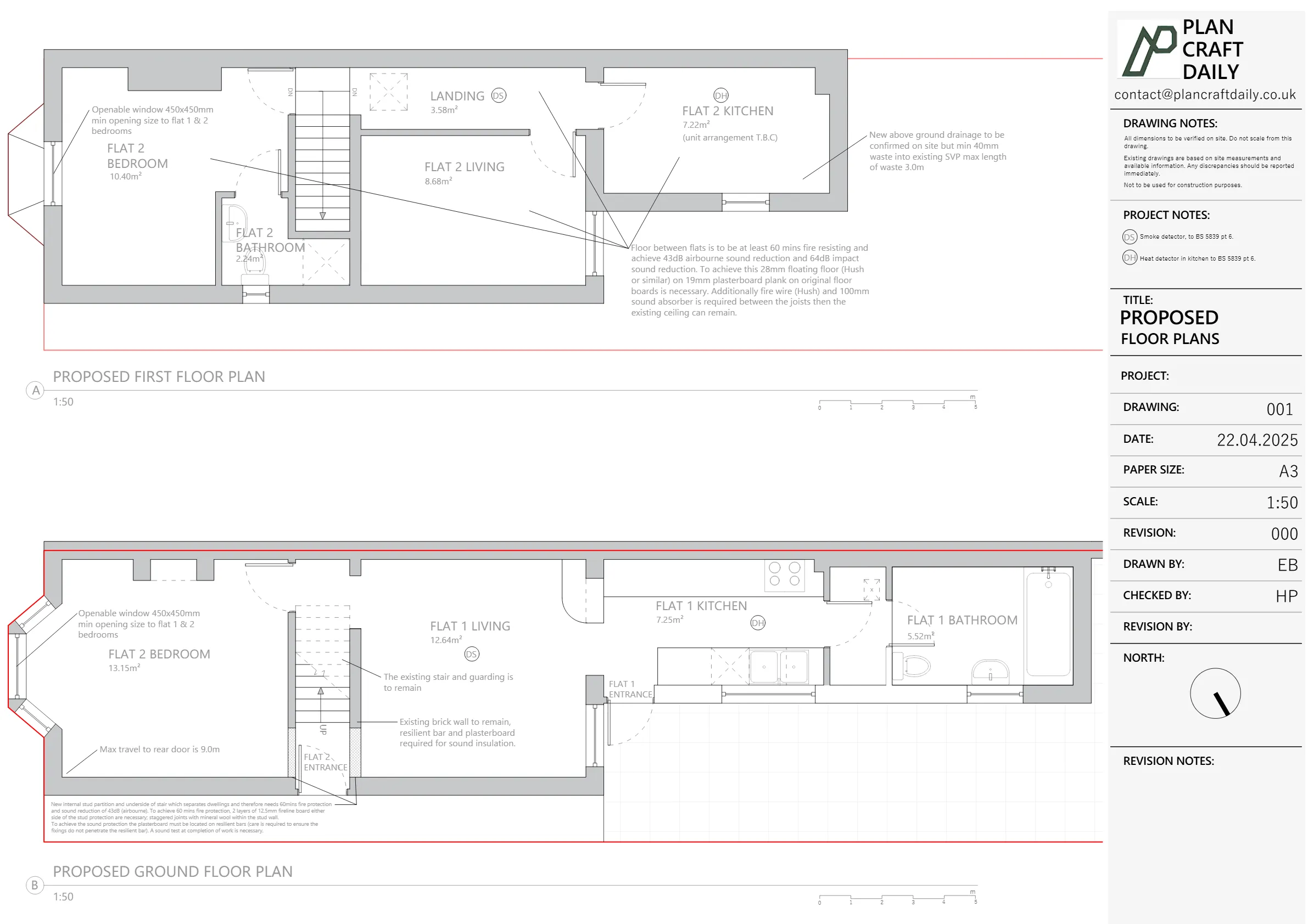 They needed us to prepare proposed first-floor extension drawings for both flats, and asked for: