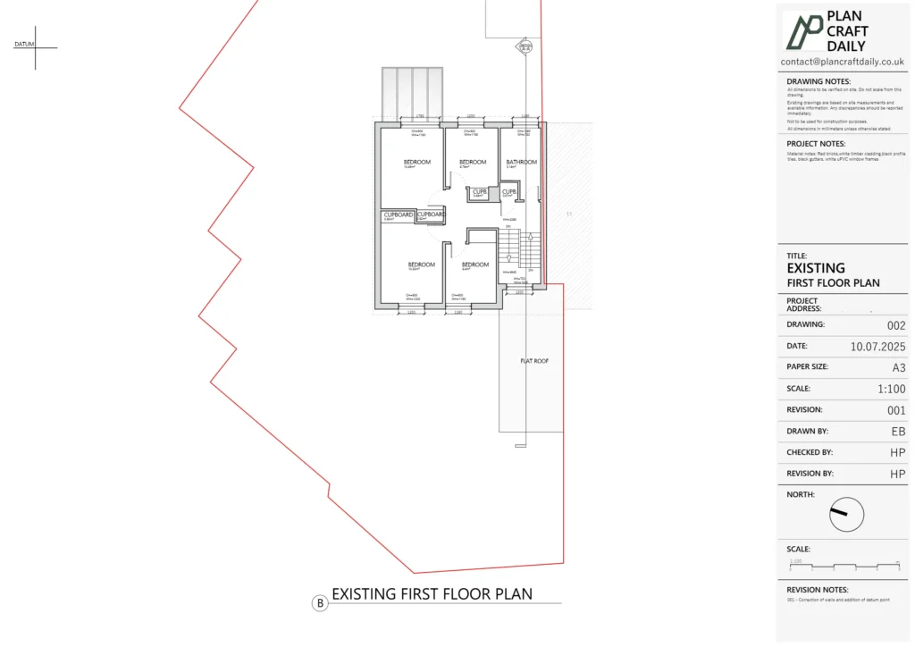 Following the issue of the drawing pack, we supported the design team as they reviewed the relationship between the ground floor and first floor. Where alignment questions were raised, we treated this as a technical coordination point—ensuring the existing drawing set could be relied on for ongoing design checks and discussions around wall positions and layout revisions.