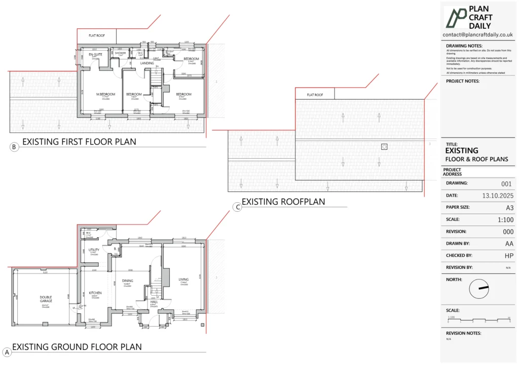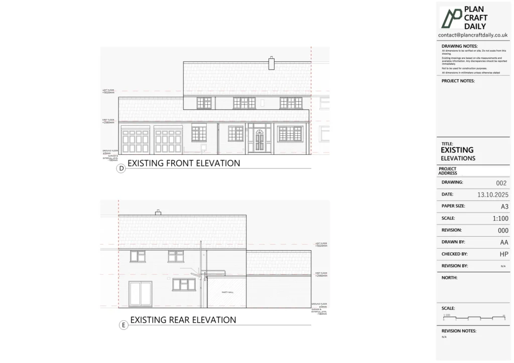 PlanCraftDaily scheduled the measured survey with an agreed arrival window and began producing the drawing set immediately after the visit. Once the missed outbuilding measurement was identified, we took responsibility and arranged a revisit at no additional charge, coordinating alternative dates and times through the client to secure access.