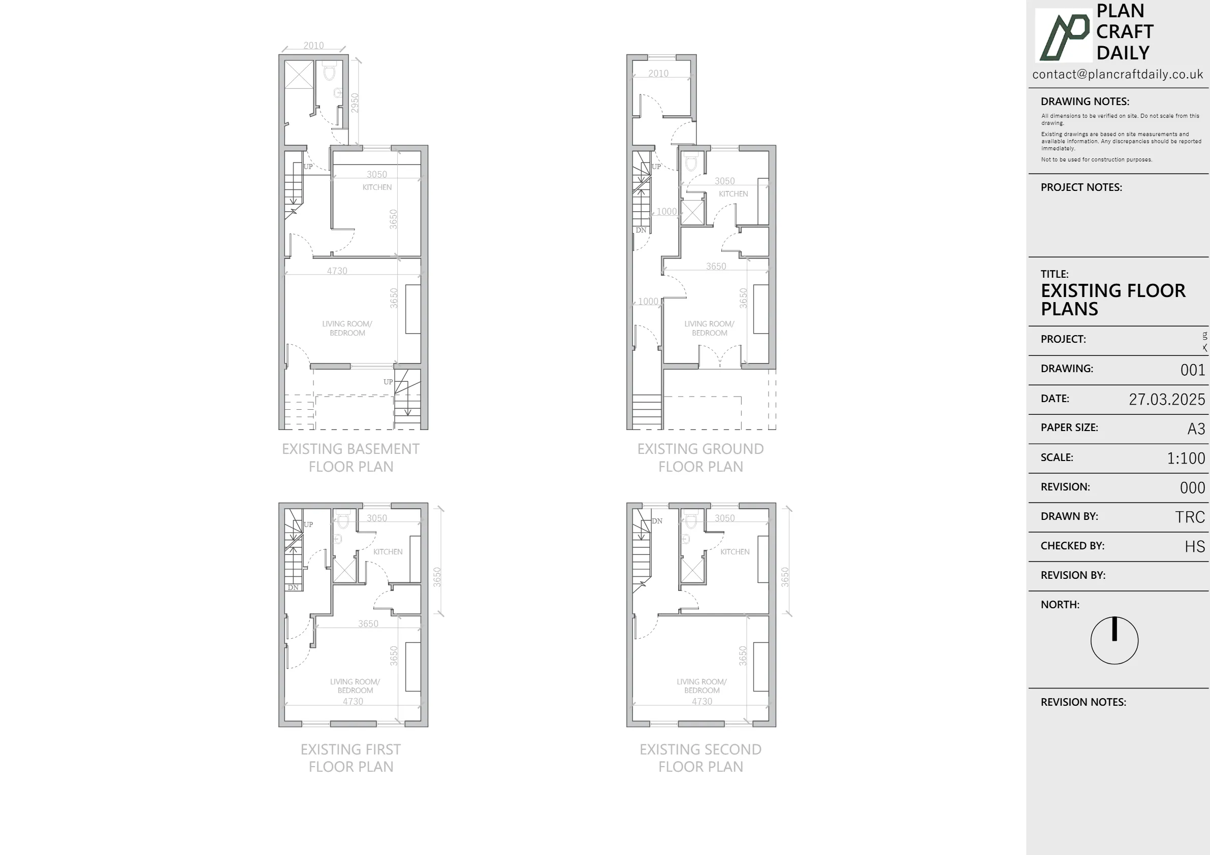 PlanCraftDaily reviewed the supplied drawings and dimension notes, then produced a CAD redraw aligned to the provided measurements. The team treated the drawings as existing/as-built documentation derived from the client’s information, focusing on linework clarity and consistent scaling for reliable use in AutoCAD.